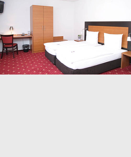 Comfort rooms with high, French windows